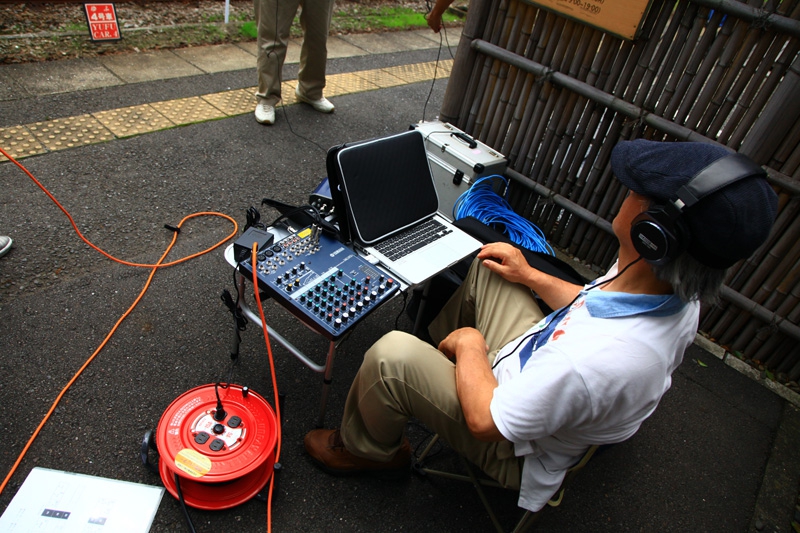 2012年7月5日 由布院駅アートホールにおいてライブ配信に備えてリハ中。MCは福井君です。
